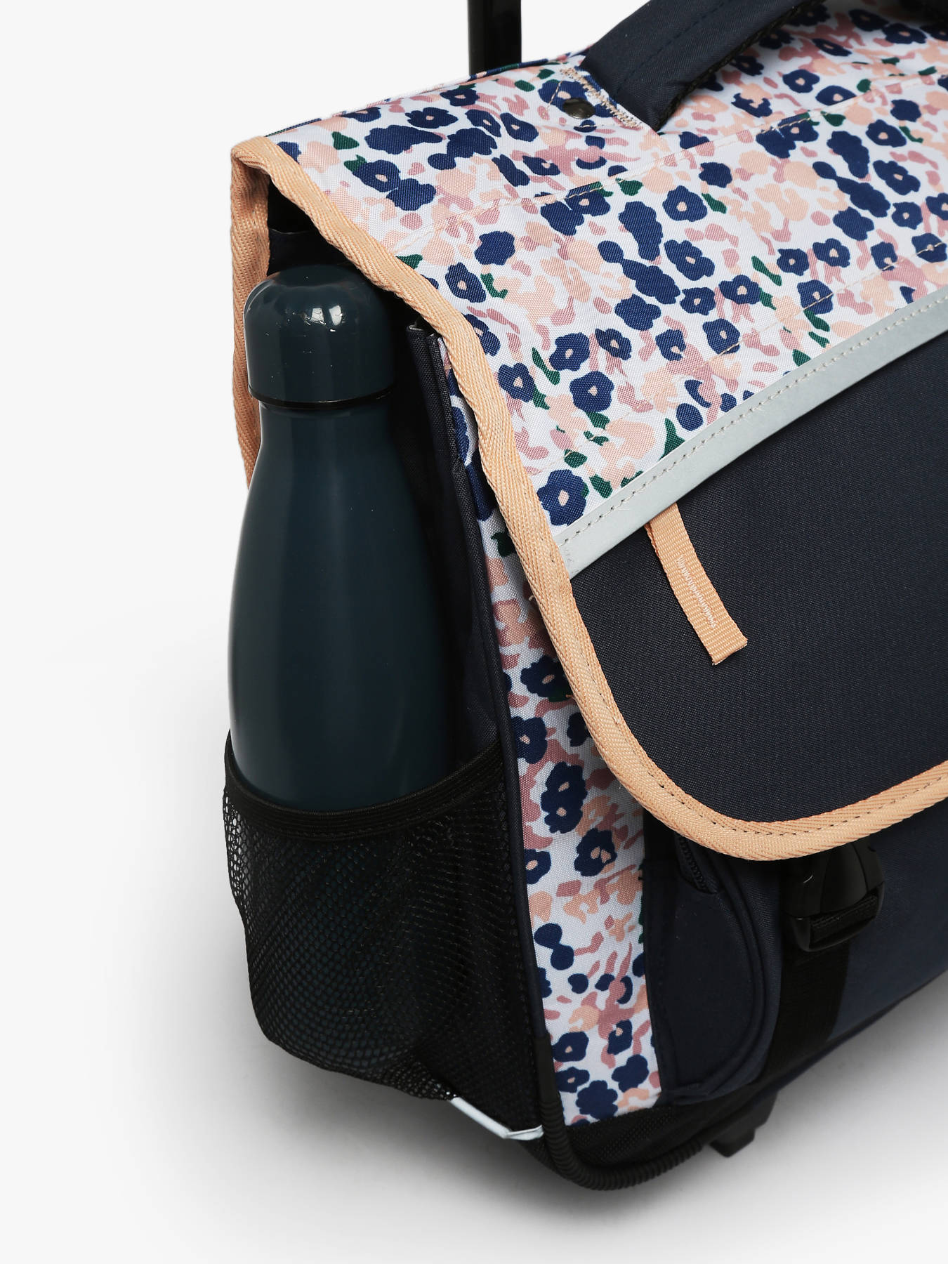 41 cm - 22 liter - 2.6 kg ~ Deze boekentas op wieltjes komt uit de Actual collectie van het merk Caméléon. Ideaal vanaf het vierde leerjaar! Deze ruime boekentas bestaat uit een ruim hoofdcompartiment met drie gescheiden opbergvakken, die mappen en schoolboeken van A4 formaat of groter kunnen bevatten. Daarnaast beschikt dit model ook over een ruim voorvak met rits, en een plat opbergvak in de overslagflap vooraan. Dankzij het dubbele kliksysteem zal uw kind de boekentas makkelijk kunnen openen en sluiten. Voor optimaal comfort zijn de rugzijde en schouderbanden extra verstevigd. Ook is deze boekentas voorzien van reflectoren, zodat uw kind zich veilig in het verkeer kan begeven. Wanneer uw kind deze boekentas niet op de rug draagt, kunt u de schouderbanden loskoppelen en opbergen in de rug van de boekentas. De wieltjes kunnen ook worden afgedekt met een uitneembare beschermflap.