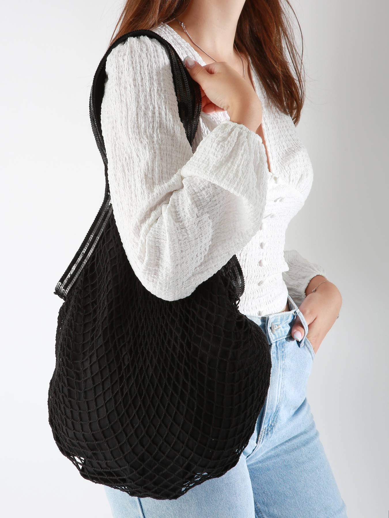 Rafia filet schoudertas